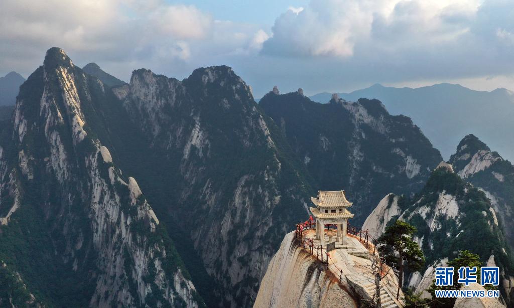 8月14日,西岳華山東峰下棋亭風(fēng)光(無人機照片)。