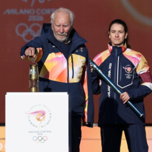 12月6日,米兰冬奥会组委会主席乔瓦尼·马拉戈在火炬传递前点燃火种盆。