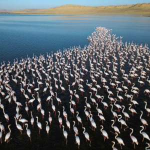 每年冬季,大批火烈鸟会飞抵埃及法尤姆省内的加龙湖觅食越冬。