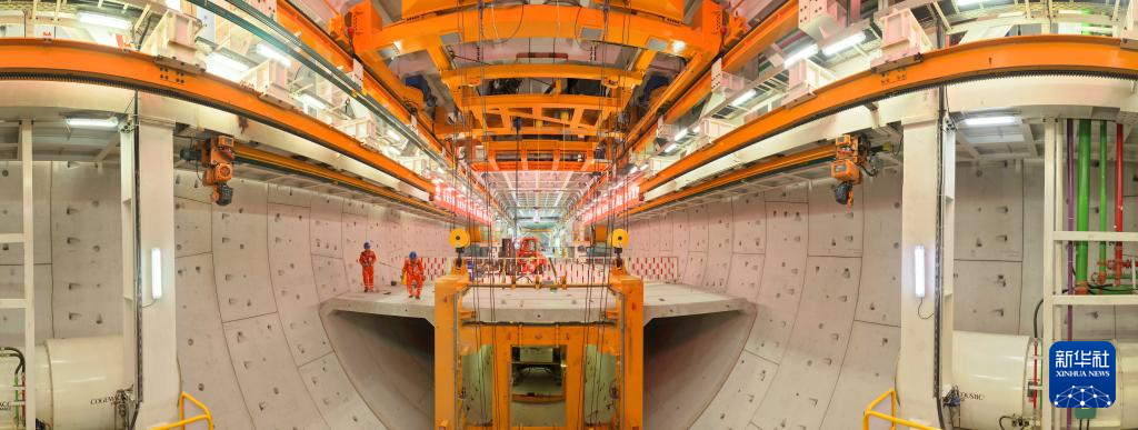 12月7日,施工人员在海太长江隧道工程施工现场拼装管片。
