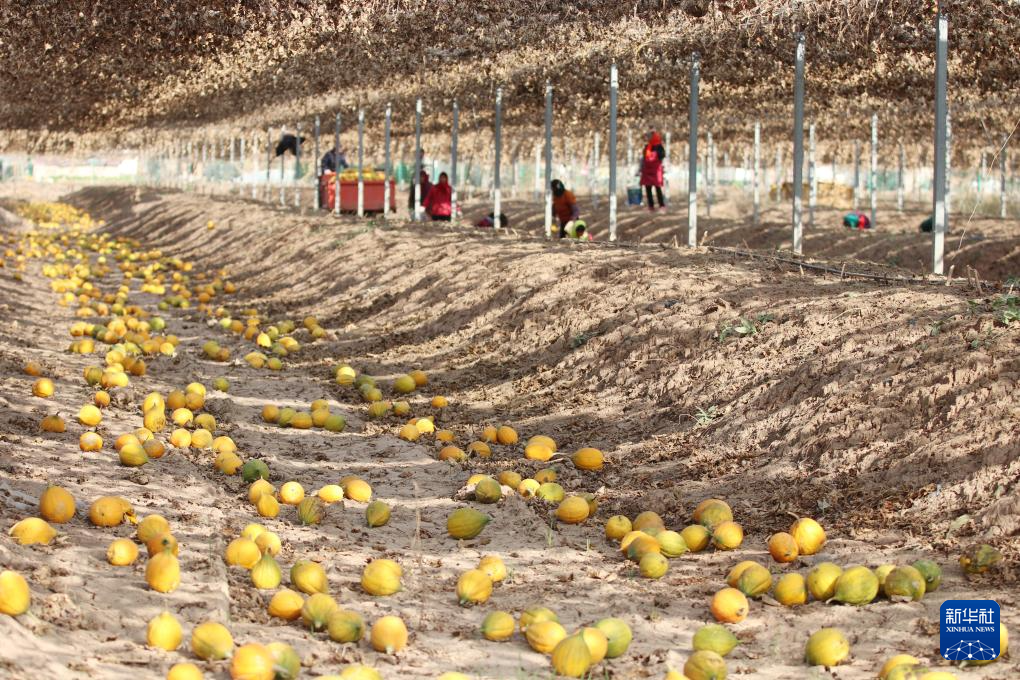 12月7日,在连云港市灌云县杨集镇利华村,村民收获成熟的瓜蒌。