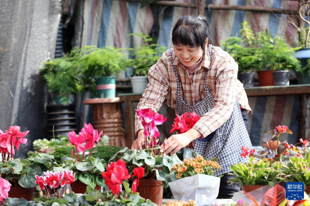 12月7日,在四川省乐山市牟子镇花卉种植基地,花农在管护花卉。