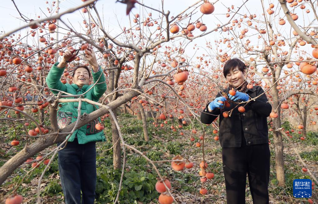 12月7日,在河南省洛阳市汝阳县三屯镇耿沟村温馨种植专业合作社,果农在采摘柿子。
