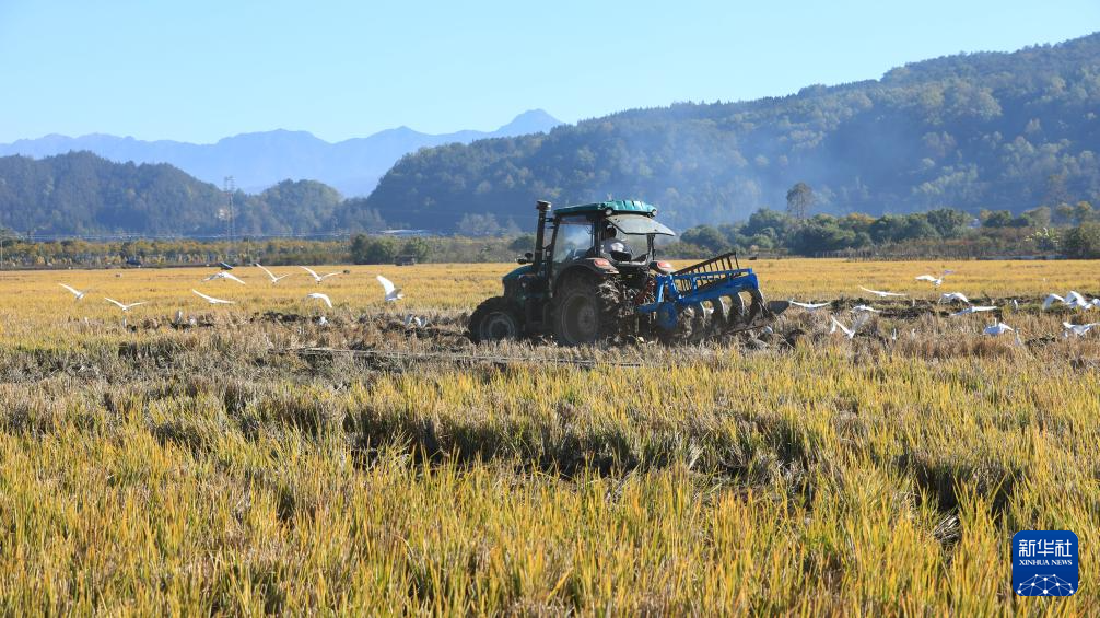 12月7日,云南省腾冲市和顺镇大庄村农民驾驶农机翻耕稻田,准备种植冬季马铃薯。