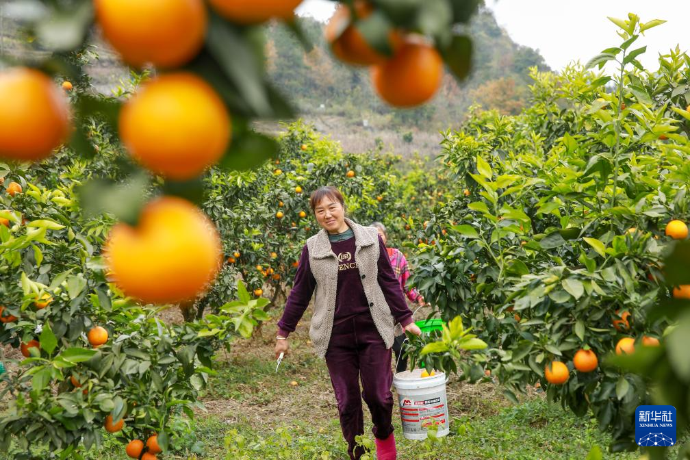 12月7日,果农在贵州省息烽县温泉镇三交村搬运柑橘。