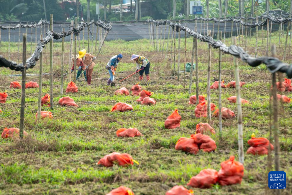 12月7日,海南省琼海市嘉积镇红星社区农民在种植魔芋。