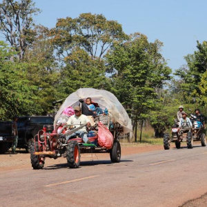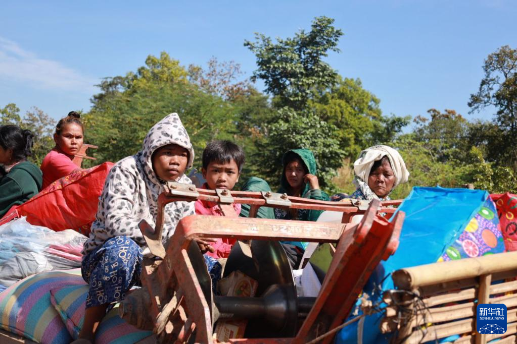 这是12月8日在柬埔寨柏威夏省边境地区拍摄的撤离的居民。