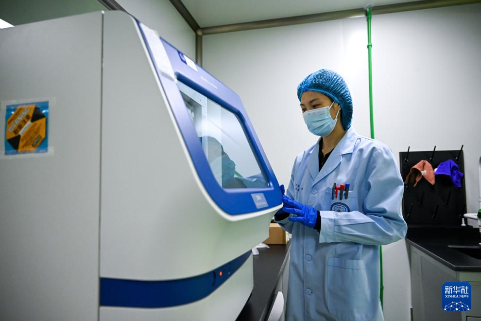 1月7日,锡林郭勒盟公安局刑侦支队刑事技术大队的许锐佳在锡林郭勒盟公安局实验室进行血样检测。