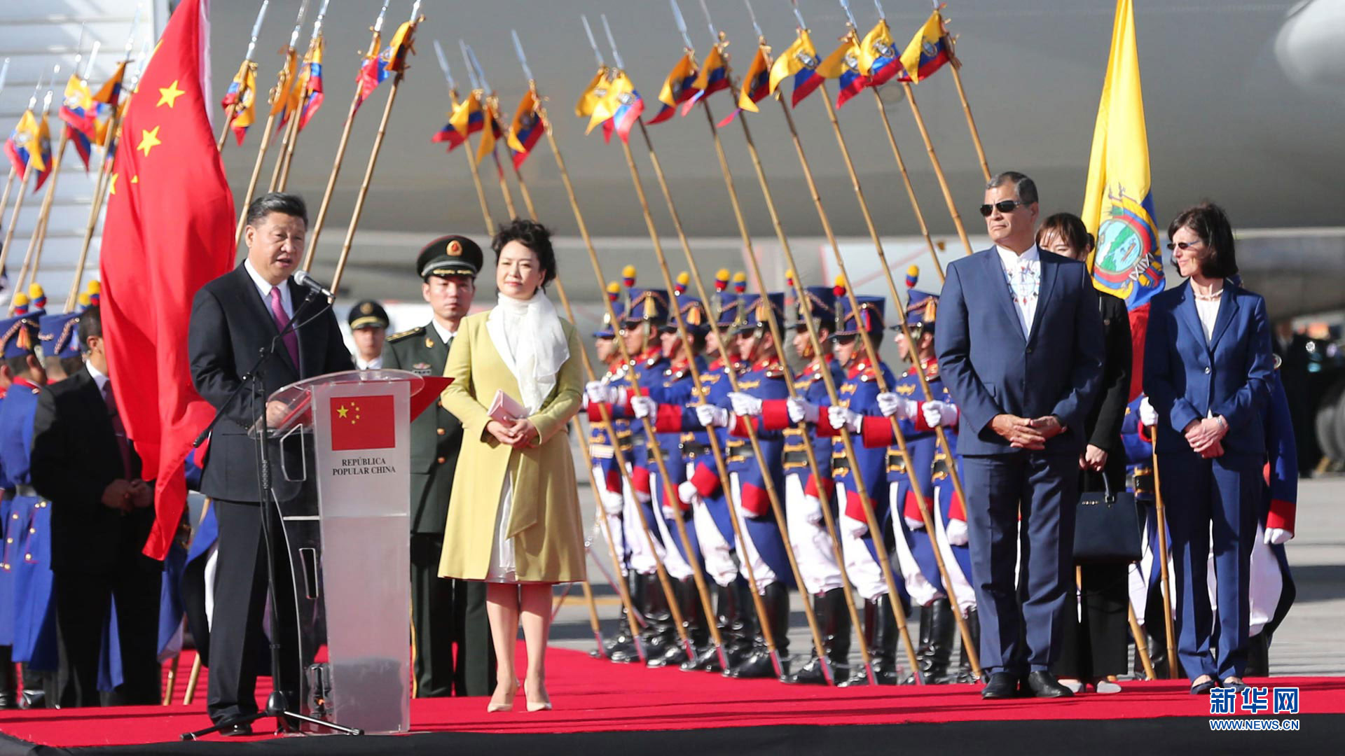 當(dāng)?shù)貢r(shí)間11月17日,國(guó)家主席習(xí)近平乘專機(jī)抵達(dá)基多,開(kāi)始對(duì)厄瓜多爾共和國(guó)進(jìn)行國(guó)事訪問(wèn)。這是厄瓜多爾總統(tǒng)科雷亞在機(jī)場(chǎng)為習(xí)近平舉行隆重歡迎儀式。新華社記者 鞠鵬 攝2016-11-18