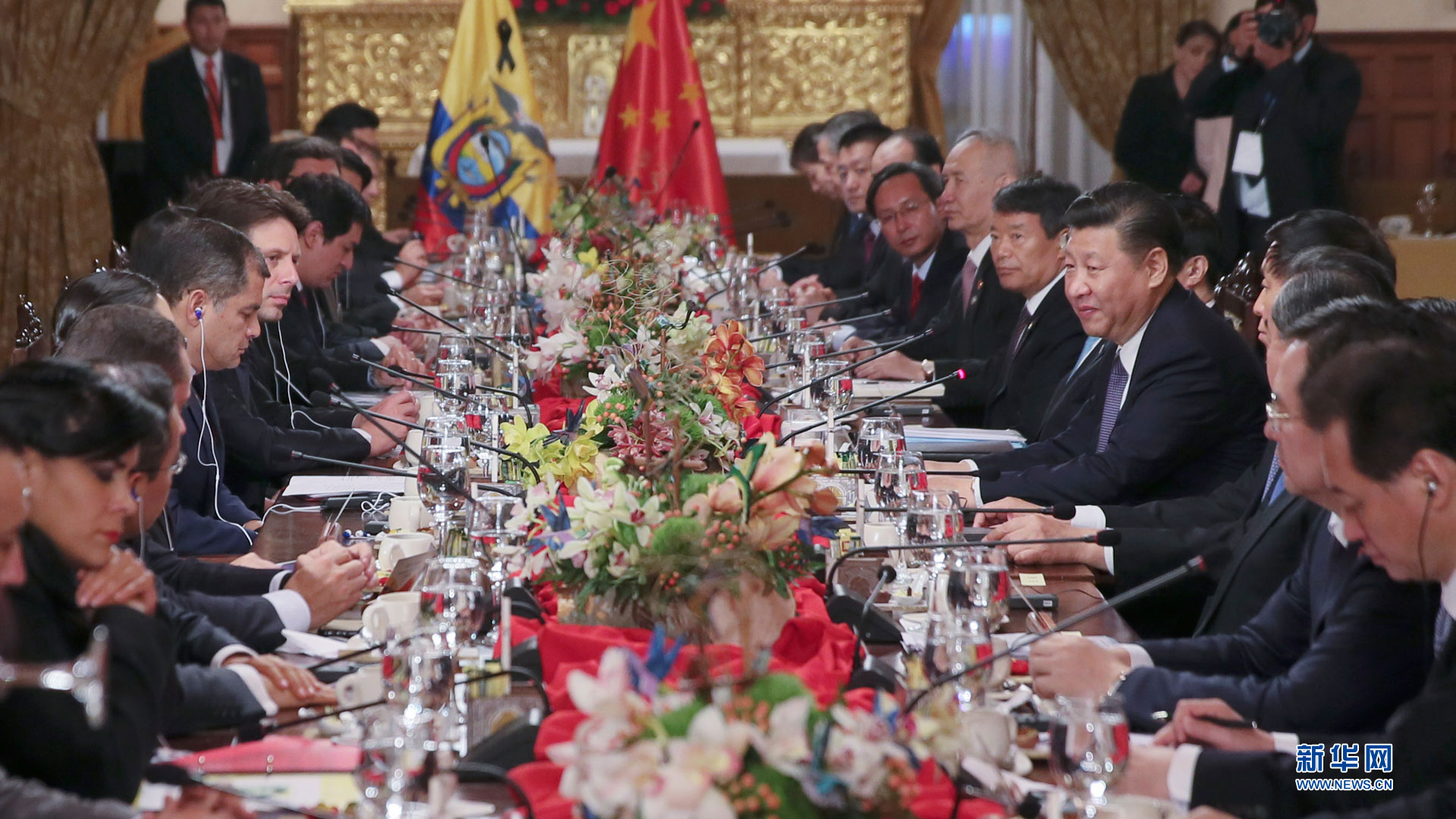 當(dāng)?shù)貢r(shí)間11月17日,國(guó)家主席習(xí)近平在基多同厄瓜多爾總統(tǒng)科雷亞舉行會(huì)談。 新華社記者 鞠鵬 攝2016-11-18