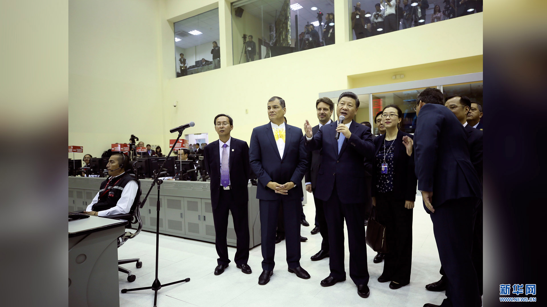 當(dāng)?shù)貢r(shí)間11月18日,國(guó)家主席習(xí)近平在基多同厄瓜多爾總統(tǒng)科雷亞共同出席中方援建的厄瓜多爾公共安全應(yīng)急指揮中心聯(lián)合實(shí)驗(yàn)室揭牌儀式,喬內(nèi)醫(yī)院奠基、科卡科多-辛克雷水電站竣工發(fā)電視頻連線活動(dòng)。這是習(xí)近平出席活動(dòng)后致辭。新華社記者 馬占成 攝2016-11-19