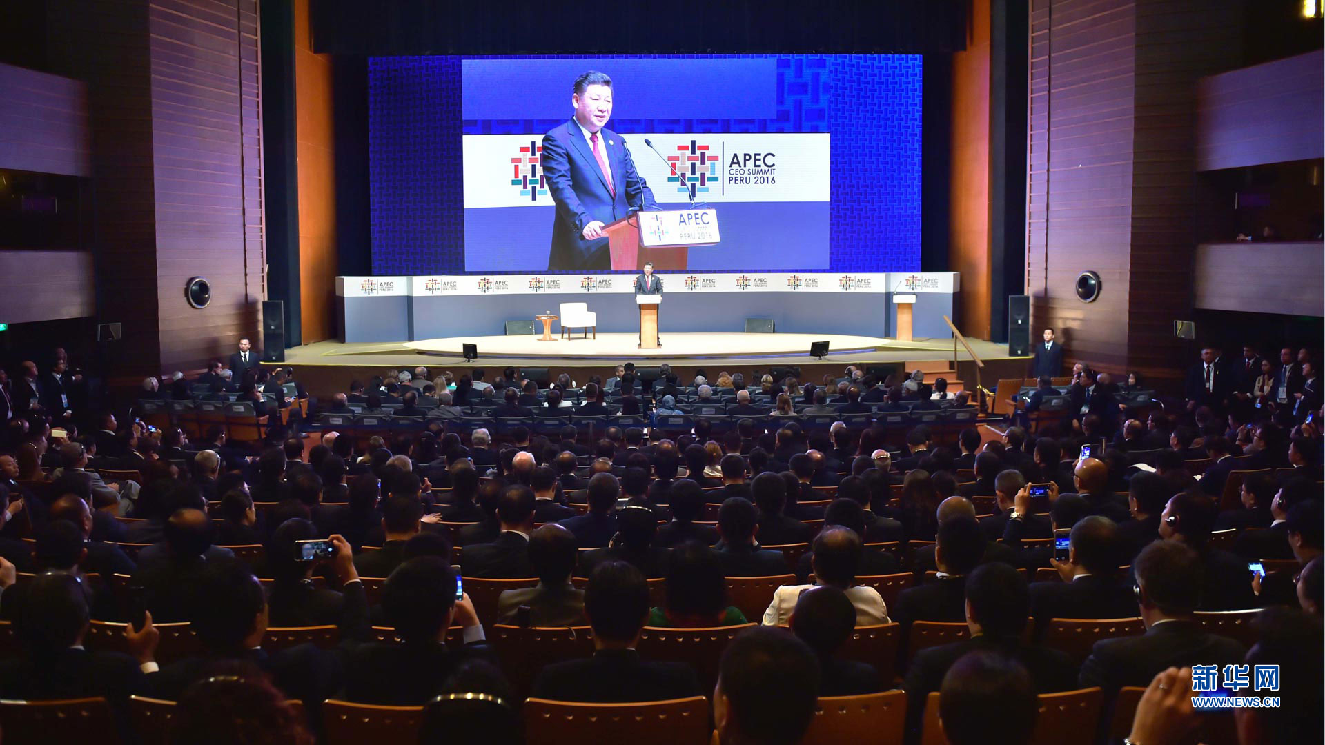 11月19日,2016年亞太經(jīng)合組織工商領(lǐng)導(dǎo)人峰會(huì)在秘魯利馬舉行。國(guó)家主席習(xí)近平應(yīng)邀出席并發(fā)表題為《深化伙伴關(guān)系 增強(qiáng)發(fā)展動(dòng)力》的主旨演講。 新華社記者 蘭紅光 攝2016-11-20