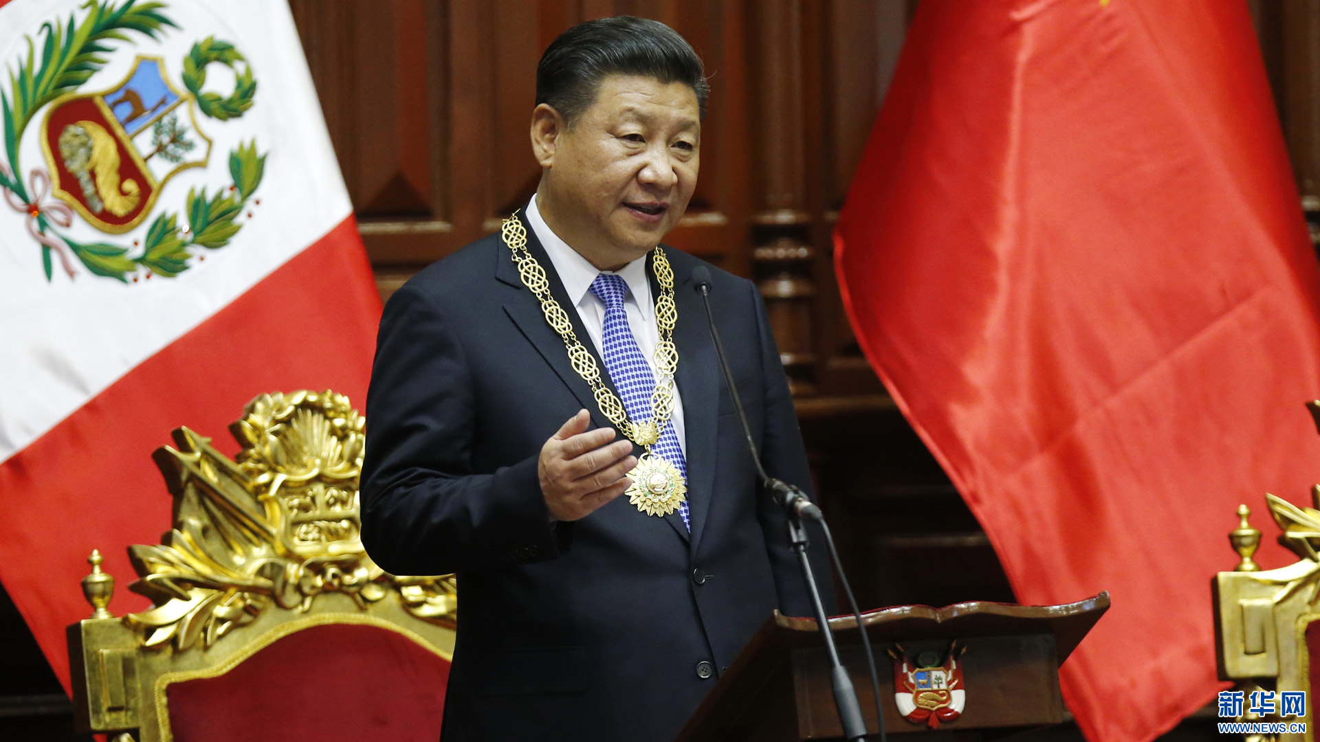 11月21日,國(guó)家主席習(xí)近平在秘魯國(guó)會(huì)發(fā)表題為《同舟共濟(jì)、揚(yáng)帆遠(yuǎn)航,共創(chuàng)中拉關(guān)系美好未來(lái)》的重要演講。 新華社記者 龐興雷 攝2016-11-22