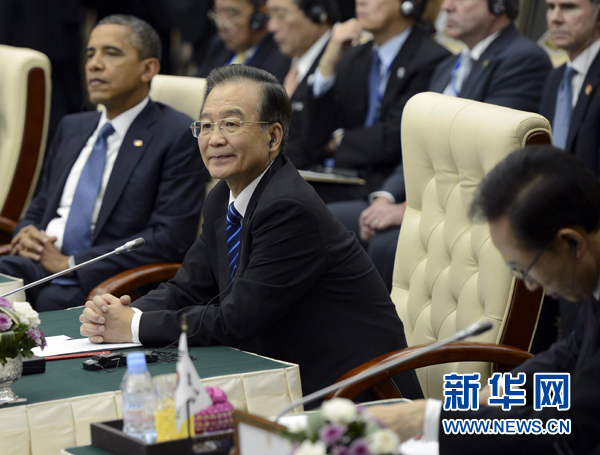 11月20日,國(guó)務(wù)院總理溫家寶在柬埔寨金邊出席第七屆東亞峰會(huì)。新華社記者 馬占成 攝