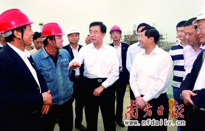 21日,汪洋在饒平縣潮州港亞太通用碼頭與企業(yè)負責人交談。南方日報記者 王輝 攝