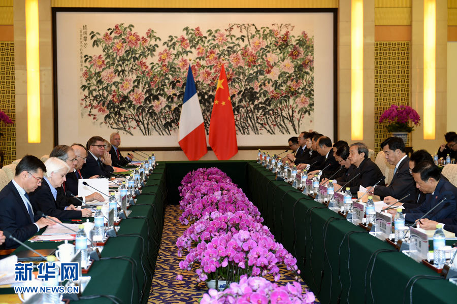 ?? 9月18日,國(guó)務(wù)院副總理馬凱與法國(guó)財(cái)政和公共賬目部長(zhǎng)薩潘在北京共同主持第三次中法高級(jí)別經(jīng)濟(jì)財(cái)金對(duì)話。 新華社記者張領(lǐng)攝
