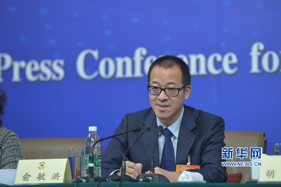 ??? 全國政協(xié)十二屆三次會議舉行記者會,邀請全國政協(xié)常委朱維群、黃潔夫和全國政協(xié)委員胡曉義、李彥宏、俞敏洪等談促進(jìn)民生改善與社會和諧穩(wěn)定,并回答記者提問。圖為俞敏洪答記者問。新華網(wǎng)/中國政府網(wǎng) 郭小天 攝
