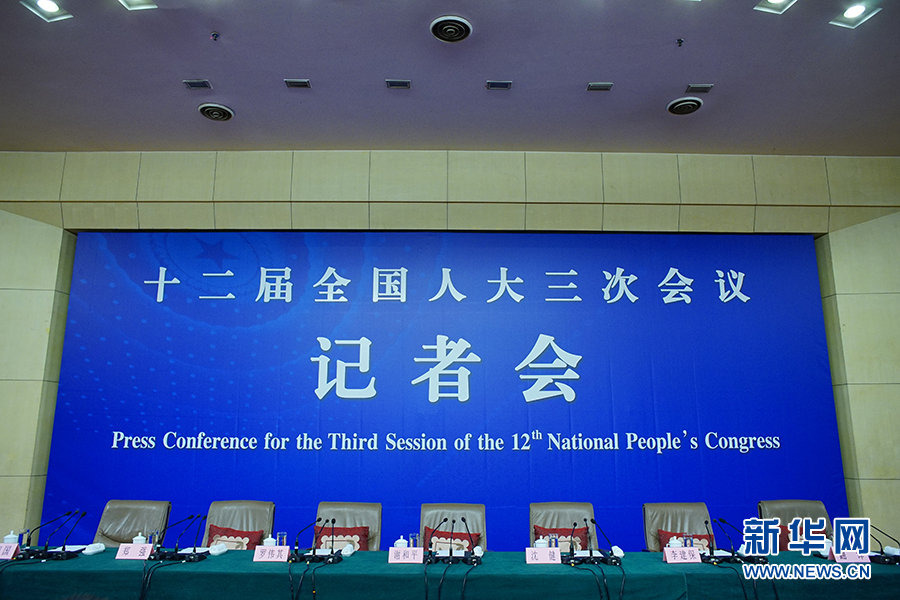 ????3月13日上午10時(shí),十二屆全國人大三次會(huì)議新聞中心邀請四川大學(xué)校長謝和平、江蘇省教育廳廳長沈健、廣東省教育廳廳長羅偉其、海南大學(xué)校長李建保、貴州大學(xué)校長鄭強(qiáng)就完善高等教育治理結(jié)構(gòu)的相關(guān)問題回答中外記者提問。圖為記者會(huì)現(xiàn)場。新華網(wǎng)/中國政府網(wǎng) 郭小天 攝
