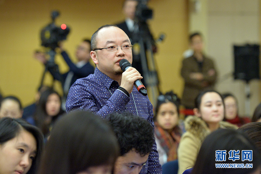 ????3月13日上午10時,十二屆全國人大三次會議新聞中心邀請四川大學(xué)校長謝和平、江蘇省教育廳廳長沈健、廣東省教育廳廳長羅偉其、海南大學(xué)校長李建保、貴州大學(xué)校長鄭強(qiáng)就完善高等教育治理結(jié)構(gòu)的相關(guān)問題回答中外記者提問。圖為法制日報、法制網(wǎng)記者提問。新華網(wǎng)/中國政府網(wǎng) 郭小天 攝