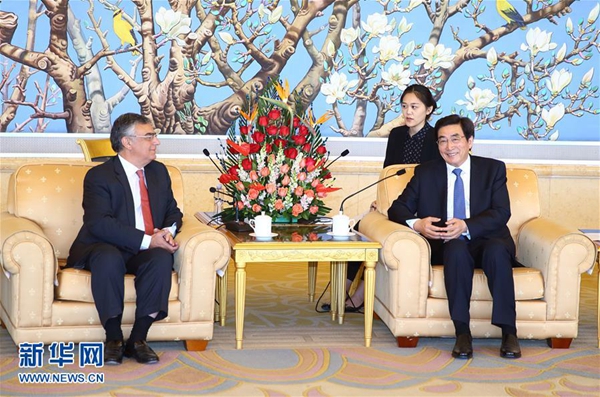 4月14日,中共中央政治局委員、北京市委書記郭金龍?jiān)诒本?huì)見葡萄牙社會(huì)民主黨總書記羅薩。 新華社記者 丁海濤 攝