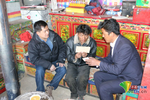 “結對認親”是西藏自治區(qū)黨委提出并高度重視的一項活動,旨在鼓勵領導干部進村入戶,和當地人結交朋友,幫助他們解決困難。作為援藏干部,廖生行也積極參與了這項活動,與當地海拔最高的鄉(xiāng)鎮(zhèn)布多鄉(xiāng)那江村的困難黨員扎珠和困難群眾開珠結對認親,每季度走訪、慰問并幫助他們。得知扎珠家里因農耕需求想要購買一臺拖拉機,廖生行主動幫忙詢問鎮(zhèn)里的資金補貼政策,幫助其盡快完成心愿。開珠家里較為貧困,除了放牧以外缺少經濟來源,廖生行也盡自己所能幫助他脫貧致富。