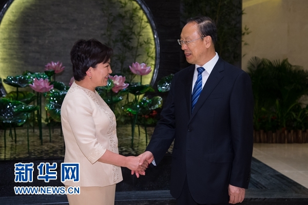 6月7日,中共中央書記處書記、全國政協(xié)副主席杜青林在澳門會(huì)見來華出席太湖世界文化論壇第四屆年會(huì)的吉爾吉斯斯坦副總理庫代別爾季耶娃。新華社記者 張金加 攝