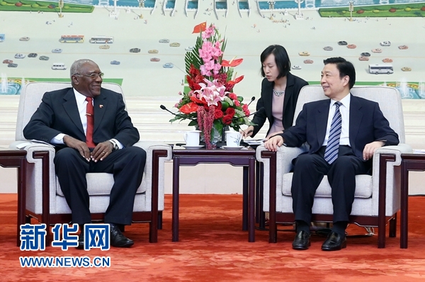 6月27日,中共中央政治局委員、國家副主席李源潮在北京會見來華通報(bào)古共七大情況的古共中央第一書記勞爾·卡斯特羅特使巴爾德斯。 新華社記者 姚大偉 攝