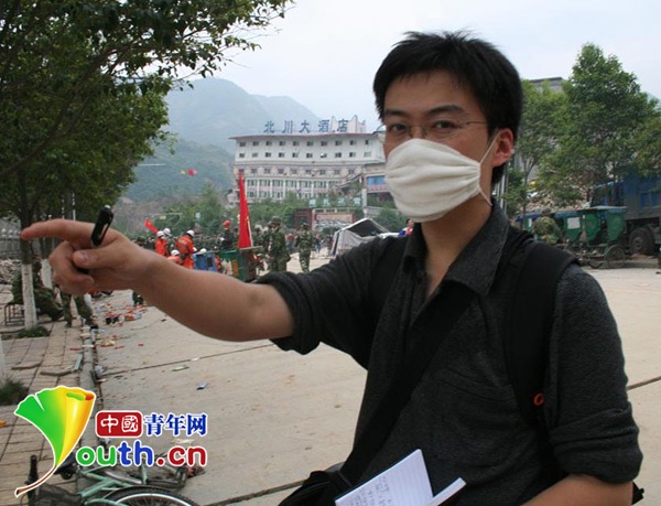 2008年5月13日,他冒著生命危險搶進北川,成為第一個進入北川新縣城的新華社記者;