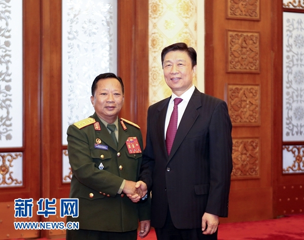 7月19日,中共中央政治局委員、國家副主席李源潮在北京會見老撾人民革命黨中央政治局委員、國防部長占沙蒙。 新華社記者丁林?jǐn)z