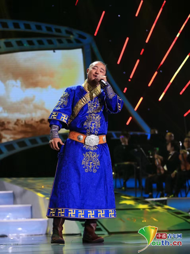 呼和牧人在《紀念中國共產(chǎn)黨成立95周年電影音樂會》演唱民歌。本人供圖