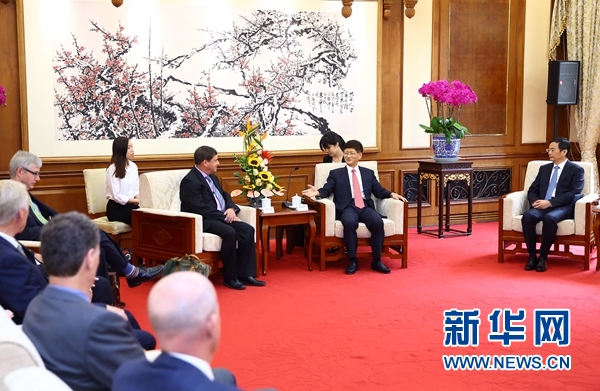 9月12日,中共中央政治局委員、中央政法委書記孟建柱在北京會見加拿大總理國家安全顧問丹尼爾·讓率領(lǐng)的首次中加高級別國家安全與法治對話加方代表團(tuán)。新華社記者丁海濤攝