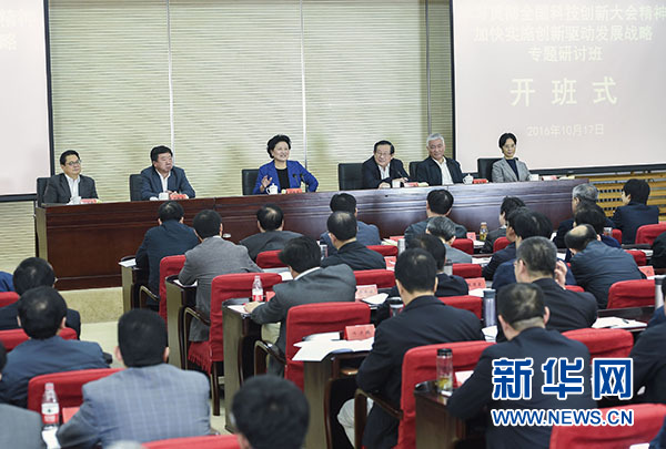 10月17日,中央組織部、中央黨校、科技部聯(lián)合舉辦的省部級干部“學(xué)習(xí)貫徹全國科技創(chuàng)新大會精神加快實(shí)施創(chuàng)新驅(qū)動發(fā)展戰(zhàn)略”專題研討班在北京開班。中共中央政治局委員、國務(wù)院副總理劉延?xùn)|出席開班式并講話。新華社記者 張領(lǐng) 攝