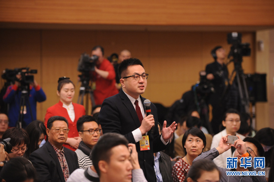 十二屆全國(guó)人大四次會(huì)議新聞中心于3月14日(星期一)10時(shí)在梅地亞中心多功能廳舉行記者會(huì),邀請(qǐng)交通運(yùn)輸部部長(zhǎng)楊傳堂、交通運(yùn)輸部運(yùn)輸服務(wù)司司長(zhǎng)劉小明、北京交通發(fā)展研究中心主任郭繼孚就“深化出租汽車改革與發(fā)展”的相關(guān)問(wèn)題回答中外記者的提問(wèn)。圖為中國(guó)網(wǎng)記者提問(wèn)。新華網(wǎng)/中國(guó)政府網(wǎng) 陳杰 攝