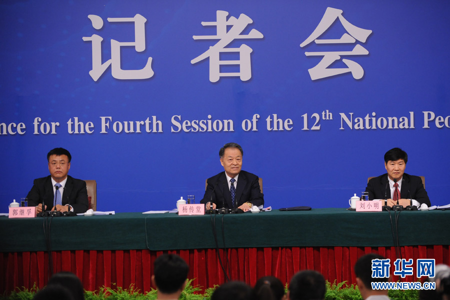十二屆全國人大四次會議新聞中心于3月14日(星期一)10時在梅地亞中心多功能廳舉行記者會,邀請交通運輸部部長楊傳堂、交通運輸部運輸服務司司長劉小明、北京交通發(fā)展研究中心主任郭繼孚就“深化出租汽車改革與發(fā)展”的相關問題回答中外記者的提問。圖為記者會主席臺。新華網/中國政府網 陳杰 攝