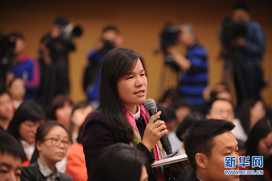 十二屆全國(guó)人大四次會(huì)議新聞中心于3月15日(星期二)10時(shí)在梅地亞中心多功能廳舉行記者會(huì),邀請(qǐng)住房和城鄉(xiāng)建設(shè)部部長(zhǎng)陳政高、副部長(zhǎng)陸克華、副部長(zhǎng)倪虹就“棚戶區(qū)改造和房地產(chǎn)工作”的相關(guān)問題回答中外記者的提問。圖為文匯報(bào)記者提問。新華網(wǎng)/中國(guó)政府網(wǎng) 陳杰 攝