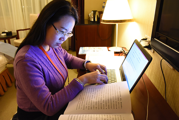 中國西藏網(wǎng)記者蘇文彥在研究福建省扶貧開發(fā)工作相關(guān)資料。中國網(wǎng)信網(wǎng) 陳舞陽 攝