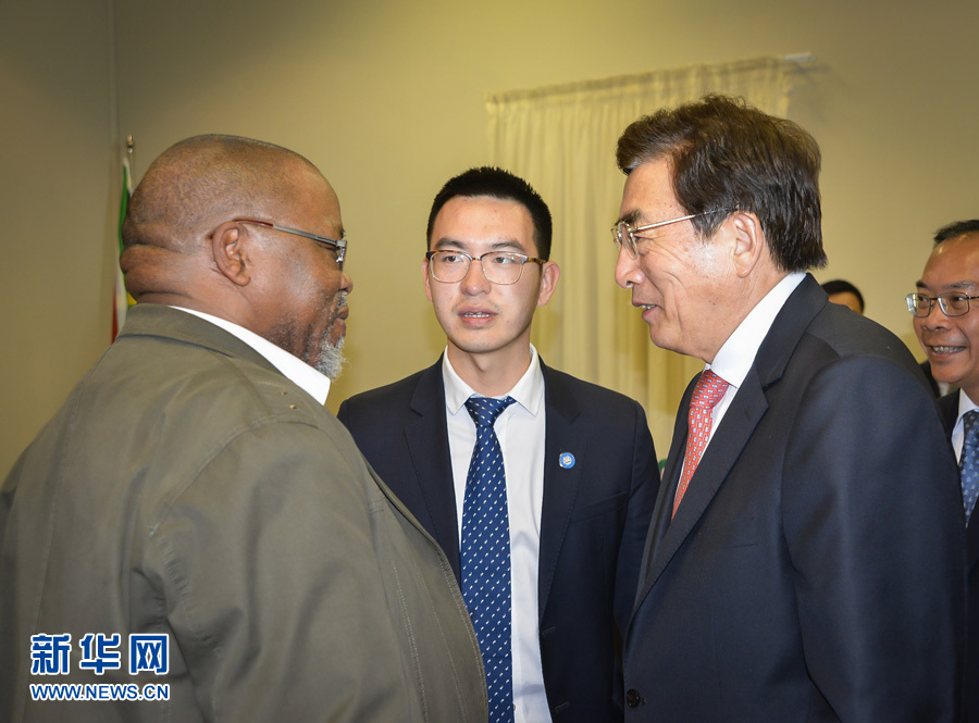 ??? 3月26日,中共中央政治局委員、北京市委書記郭金龍(前右)在南非約翰內(nèi)斯堡與執(zhí)政的南非非洲人國民大會(huì)總書記曼塔謝(前左)舉行工作會(huì)談。新華社記者趙熙攝