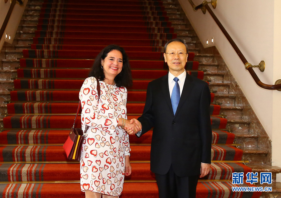 7月4日,在比利時(shí)首都布魯塞爾,中共中央書記處書記、全國(guó)政協(xié)副主席杜青林(右)會(huì)見(jiàn)比利時(shí)聯(lián)邦參議長(zhǎng)德弗萊涅。應(yīng)德弗萊涅邀請(qǐng),杜青林率中共代表團(tuán)于7月4日至5日訪問(wèn)比利時(shí)。 新華社記者龔兵攝