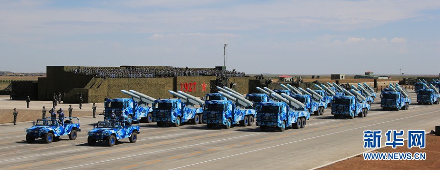 7月30日,慶祝中國人民解放軍建軍90周年閱兵在位于內(nèi)蒙古的朱日和訓(xùn)練基地舉行。中共中央總書記、國家主席、中央軍委主席習(xí)近平檢閱部隊并發(fā)表重要講話。這是海軍導(dǎo)彈第1方隊。新華社記者 查春明 攝