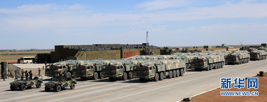 7月30日,慶祝中國人民解放軍建軍90周年閱兵在位于內(nèi)蒙古的朱日和訓(xùn)練基地舉行。中共中央總書記、國家主席、中央軍委主席習(xí)近平檢閱部隊并發(fā)表重要講話。這是核導(dǎo)彈方隊。新華社記者 查春明 攝