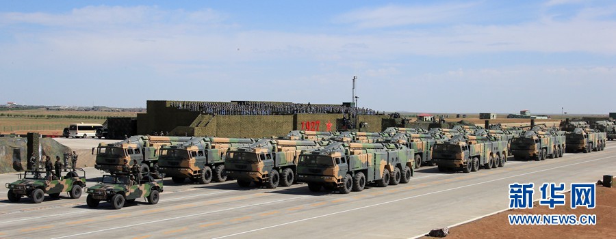 新華社內(nèi)蒙古朱日和7月30日電(記者李兵峰、陳曦)核常兼?zhèn)洌驊貞?zhàn)。在慶祝建軍90周年閱兵中,由火箭軍1個部隊方隊和4個導(dǎo)彈方隊、5型導(dǎo)彈組成的戰(zhàn)略打擊群,以“壓軸”方式光榮地接受檢閱。