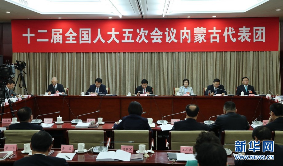 3月10日,十二屆全國人大五次會議內蒙古代表團全體會議向媒體開放。新華網發(fā)(王超 攝)