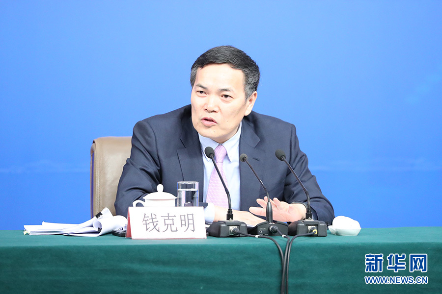 3月11日,十二屆全國人大五次會議新聞中心舉行記者會,主題是“改革開放調(diào)結(jié)構(gòu) 創(chuàng)新驅(qū)動促發(fā)展”,商務部部長鐘山、副部長王受文、副部長錢克明出席并回答中外記者的提問。圖為商務部副部長錢克明回答記者提問。 新華網(wǎng)/中國政府網(wǎng) 傅義洲 攝