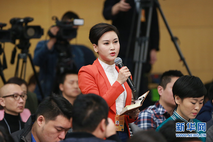 3月11日,十二屆全國人大五次會議新聞中心舉行記者會,邀請工業(yè)和信息化部部長苗圩、副部長辛國斌和總工程師、新聞發(fā)言人張峰就“推進實施‘中國制造2025’”的相關(guān)問題回答中外記者的提問。圖為中央電視臺記者提問。新華網(wǎng)/中國政府網(wǎng) 傅義洲 攝