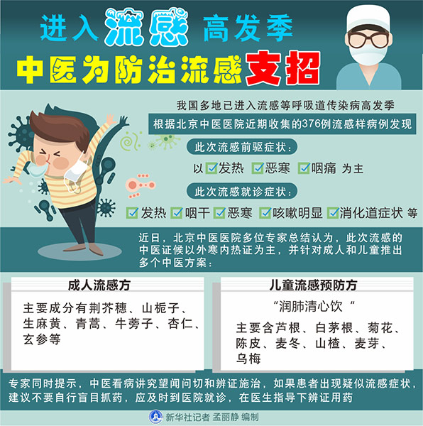 圖表:進(jìn)入流感高發(fā)季 中醫(yī)為防治流感支招 新華社記者 孟麗靜 編制