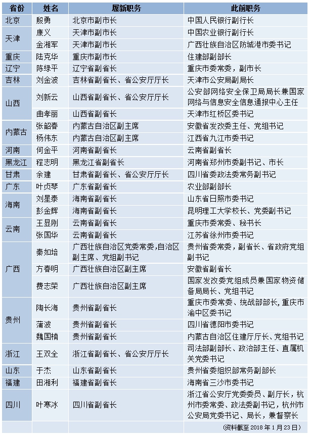 表:部分省級(jí)政府副職調(diào)整一覽