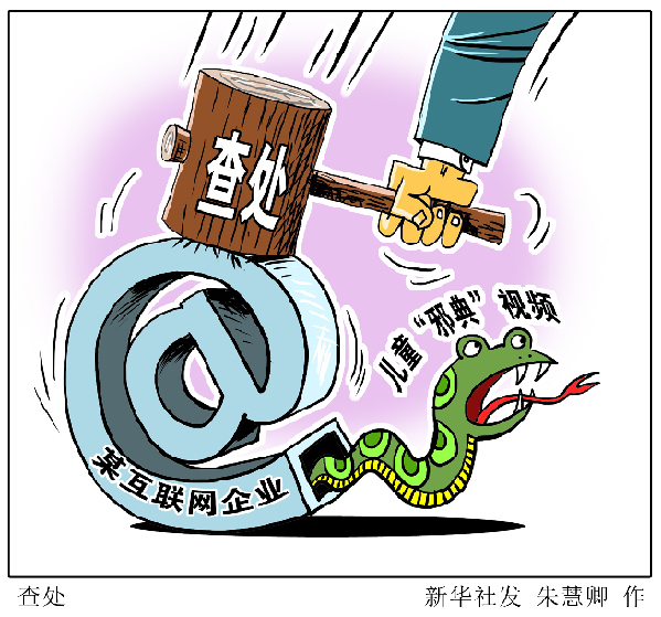 按照全國(guó)“掃黃打非”工作小組辦公室的部署要求,近期,廣東、北京兩地“掃黃打非”部門(mén)深入查辦涉兒童邪典視頻案件。優(yōu)酷、愛(ài)奇藝等一批為兒童“邪典”視頻提供傳播平臺(tái)的互聯(lián)網(wǎng)企業(yè)被依法查處。新華社發(fā) 朱慧卿 作