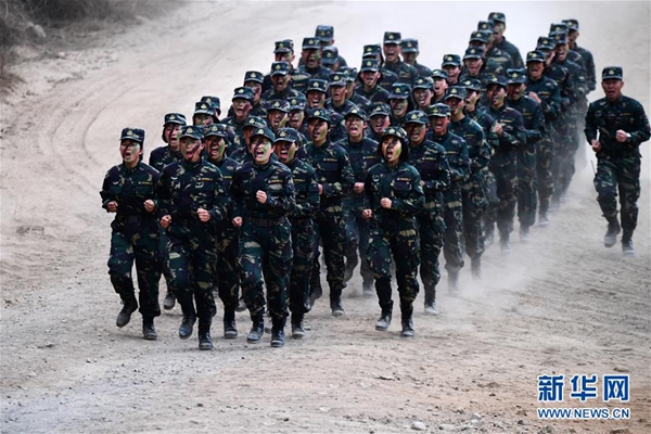 第75集團(tuán)軍某特戰(zhàn)旅指揮通信連進(jìn)行越野訓(xùn)練(2月1日攝)。新華社記者 張永進(jìn) 攝
