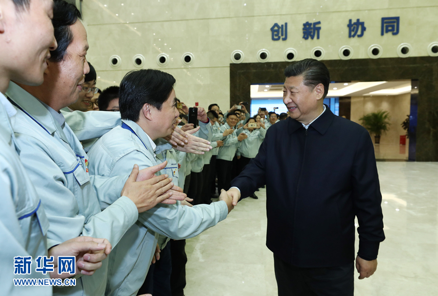 這是2月11日下午,習(xí)近平在成都中電熊貓顯示科技有限公司考察時同員工親切握手。 新華社記者 鞠鵬 攝