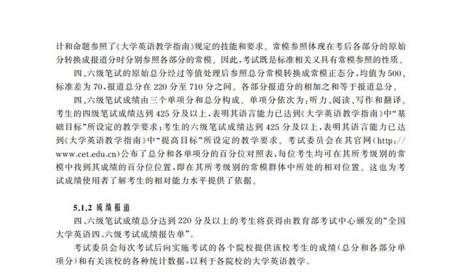 關(guān)于“大學(xué)英語(yǔ)四、六級(jí)考試分?jǐn)?shù)解釋”,官網(wǎng)給出的解釋全文如下: